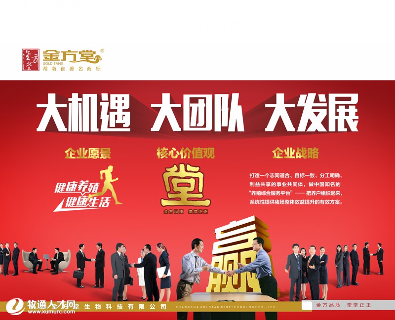 長沙金方堂生物科技有限公司,為倡導(dǎo)“金方品質(zhì)?堂堂正正”的核心企業(yè)理念,2015年開始實(shí)行重大經(jīng)營戰(zhàn)略轉(zhuǎn)型,在全國各地建立“分公司直營模式”,把優(yōu)秀產(chǎn)品直接分享給用戶,打造一個(gè)全新的“事業(yè)共同體”。公司將整合更多有創(chuàng)意有激情的行業(yè)精英加入我們的共同體事業(yè),建立一支觀念前衛(wèi)的直營團(tuán)隊(duì),共享發(fā)展機(jī)遇,創(chuàng)造更多的經(jīng)濟(jì)效益和社會(huì)價(jià)值,促進(jìn)我國畜牧業(yè)和食品安全的健康有序發(fā)展。