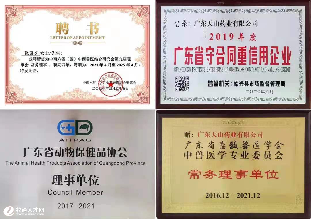 公司歷經(jīng)十多年的高速發(fā)展,已經(jīng)成為一家擁有三家子公司的集團化公司,旗下子公司包括廣東帝尊實業(yè)有限公司,也躍居成為全國獸藥行業(yè)排名前五的企業(yè),并獲得了行業(yè)授予的“2016畜牧行業(yè)用戶優(yōu)選品牌評選——十五強成長潛力品牌”、“2016年畜牧行業(yè)用戶優(yōu)選品牌評選- - -二十大“綠色環(huán)?!备咝й`行企業(yè)”、“2016中國畜牧行業(yè)優(yōu)秀雇主獎”、“2016年農(nóng)業(yè)水產(chǎn)畜牧聯(lián)合會--銀牌贊助單位”、“2017-2021年廣東省動物保健品協(xié)會理事單位”、“2019年廣東省守合同重信用企業(yè)”、“2020年中國管理科學(xué)研究院商學(xué)院--大國醫(yī)者”等榮譽。