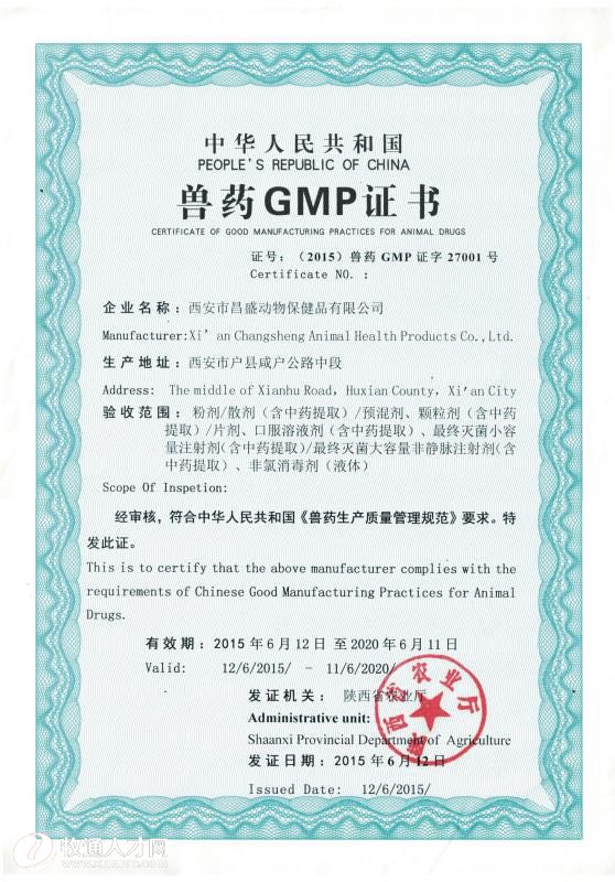 西安市昌盛動(dòng)物保健品有限公司是一家專業(yè)從事獸藥研發(fā)、生產(chǎn)、銷售、推廣、服務(wù)為一體的高新技術(shù)企業(yè),注冊(cè)資金8000萬(wàn)。公司坐落于美麗的十三朝古都-西安,是西北地區(qū)最大的獸藥生產(chǎn)企業(yè),是目前國(guó)內(nèi)主要的禽藥生產(chǎn)企業(yè)之一。公司依托新西蘭梅西大學(xué)、中國(guó)藥科大學(xué)、中國(guó)農(nóng)業(yè)大學(xué)、羅氏中國(guó)、西北農(nóng)林科技大學(xué)、華南農(nóng)業(yè)大學(xué)等專家、教授的科研成果,結(jié)合國(guó)內(nèi)養(yǎng)殖現(xiàn)狀及發(fā)展方向,疫病流行趨勢(shì),共同推出適合目前養(yǎng)殖需求,更具時(shí)效性的最新動(dòng)物保健產(chǎn)品。2005年以高分通過(guò)農(nóng)業(yè)部GMP的認(rèn)證,2010年和2015年以陜西省最高分順利通過(guò)農(nóng)業(yè)部GMP的復(fù)驗(yàn),現(xiàn)擁有目前國(guó)內(nèi)最先進(jìn)的預(yù)混劑、顆粒劑、口服液、中藥萃取、注射液、消毒劑等十條生產(chǎn)線。強(qiáng)大的技術(shù)后盾和雄厚的經(jīng)濟(jì)實(shí)力吸收并培養(yǎng)了一批能征善戰(zhàn)的營(yíng)銷團(tuán)隊(duì)和售后服務(wù)團(tuán)隊(duì),公司現(xiàn)有營(yíng)銷人員200多名,售后服務(wù)人員100多人,大專以上學(xué)歷占98%以上,產(chǎn)品暢銷河南、山東、東北、河北、江蘇、湖北、安徽、陜西、山西、新疆等二十多個(gè)省。公司成立至今,堅(jiān)持“以質(zhì)量求生存,“樹(shù)德勝品牌,建百年老店”是每一位德勝人共同的目標(biāo)愿景,德勝的飛躍發(fā)展,離不開(kāi)社會(huì)各界的大力支持,德勝人期待您的加盟!德勝使命詮釋:1、為養(yǎng)殖業(yè)的健康發(fā)展保駕護(hù)航,為養(yǎng)殖業(yè)的效益提升不懈努力! 2、公司通過(guò)提高科研創(chuàng)新、推廣科學(xué)養(yǎng)殖理念、加強(qiáng)產(chǎn)品質(zhì)量管控、健全營(yíng)銷體系、強(qiáng)化服務(wù)意識(shí),讓養(yǎng)殖業(yè)無(wú)后顧之憂!3、帶領(lǐng)客戶贏利,帶動(dòng)員工發(fā)展,促進(jìn)社會(huì)和諧!德勝宣言:1、對(duì)客戶:聚焦客戶需求,提供有競(jìng)爭(zhēng)力的解決方案和服務(wù),持續(xù)為客戶創(chuàng)造最大價(jià)值!2、對(duì)同仁:給同仁搭建一個(gè)展示才華、快速成長(zhǎng)和實(shí)現(xiàn)自我價(jià)值的舞臺(tái),讓同仁過(guò)上幸福、體面和榮耀的生活!3、對(duì)股東:高度負(fù)責(zé)、長(zhǎng)效回報(bào)!4、對(duì)社會(huì):為人類能享受綠色食品、保持身心健康而努力!德勝愿景:1、有養(yǎng)殖的地方就有昌盛產(chǎn)品和服務(wù)!2、為國(guó)家創(chuàng)建一個(gè)具有國(guó)際競(jìng)爭(zhēng)力的卓越企業(yè),為民族創(chuàng)建一個(gè)具有百年發(fā)展力的世界品牌!務(wù)! 昌盛藥業(yè)集團(tuán)過(guò)去、現(xiàn)在和未來(lái)一直秉承并努力實(shí)踐一個(gè)使命:讓養(yǎng)殖更輕松!為此我們過(guò)去、現(xiàn)在和未來(lái)的科技研發(fā)也一直以使命為目標(biāo)進(jìn)行堅(jiān)持不懈的工作。小勝憑智、大勝靠德,靠德騰飛!
