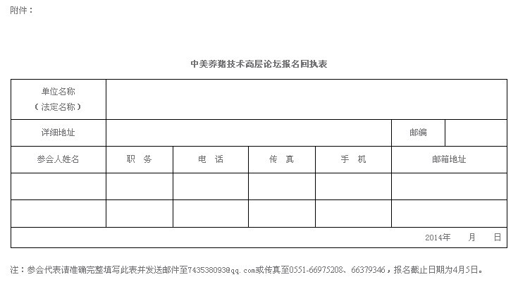 參會(huì)嘉賓可通過(guò)電話、短信報(bào)名或通過(guò)郵箱將參會(huì)回執(zhí)表(詳見(jiàn)附件)傳至組委會(huì),截止日期2014年4月5日。每單位限報(bào)2人,超員每位收取人民幣1000元(食宿、聽(tīng)課、會(huì)議資料由會(huì)務(wù)組統(tǒng)一安排)。