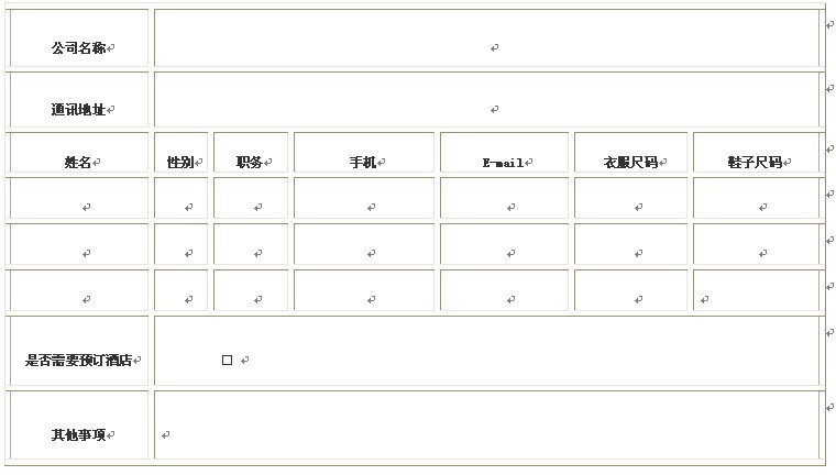 注:1.參會(huì)期間,天兆豬業(yè)將為您準(zhǔn)備干凈、舒適的衣物,請(qǐng)按照以下說明填寫尺碼:衣服尺碼——165cm為S號(hào)、170cm為M號(hào)、175cm為L號(hào),以此類推。若您的身高為174cm,請(qǐng)?zhí)顚憽癓”;鞋子尺寸——請(qǐng)根據(jù)實(shí)際情況填寫,若您平時(shí)穿鞋的尺碼為41碼,請(qǐng)?zhí)顚憽?1”。