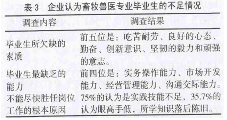 3.2.2企業(yè)對(duì)畜牧獸醫(yī)專業(yè)畢業(yè)生的要求:情況見(jiàn)表2。