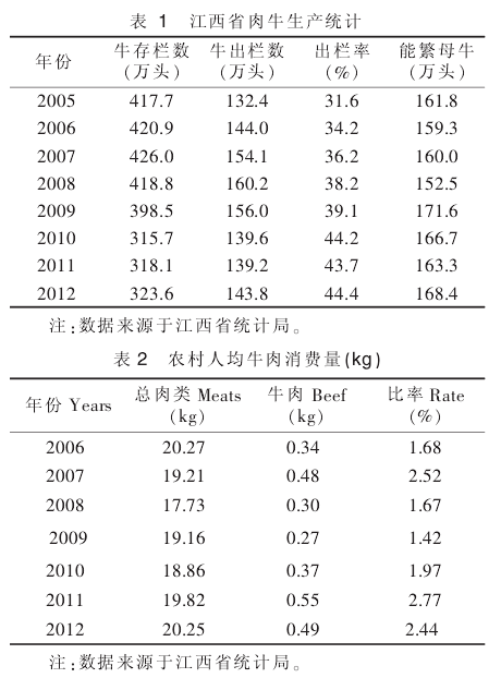 近年來江西省肉牛存欄量和牛肉產(chǎn)量開始下滑,牛肉供不應(yīng)求,牛源短缺,肉牛業(yè)發(fā)展總體呈短缺態(tài)勢,牛肉注水、走私進(jìn)口等問題嚴(yán)重。肉牛產(chǎn)業(yè)面臨此危機(jī),究其根本原因主要是生產(chǎn)方式的轉(zhuǎn)變和牛的用途改變所致。牛從耕牛向肉牛轉(zhuǎn)換,對農(nóng)戶來說,過去養(yǎng)牛既能提供生產(chǎn)性服務(wù),又能作為肉牛賣掉,可以起到一舉兩得的作用,但現(xiàn)在只能作為肉牛賣掉,從經(jīng)濟(jì)價值上來說與養(yǎng)豬、外出打工相比不具優(yōu)勢,所以出現(xiàn)越來越多的棄養(yǎng)現(xiàn)象。2000年以來大量宰殺母牛和青年牛更對本已危如累卵的肉牛產(chǎn)業(yè)起到釜底抽薪的作用。