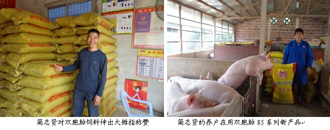 簡(jiǎn)志賢的飼料店里,我們看到,堆放著的盡是850教槽料、851乳豬料、852小豬料、853中豬料。他告訴記者,現(xiàn)在養(yǎng)戶都喜歡用85系列產(chǎn)品。雙胞胎推出85系列產(chǎn)品才幾個(gè)月,他經(jīng)銷的產(chǎn)品結(jié)構(gòu)就發(fā)生了巨大變化,已有80%的產(chǎn)品都換上了85系列,雙胞胎85系列產(chǎn)品大受市場(chǎng)歡迎?。ㄑ胩m)