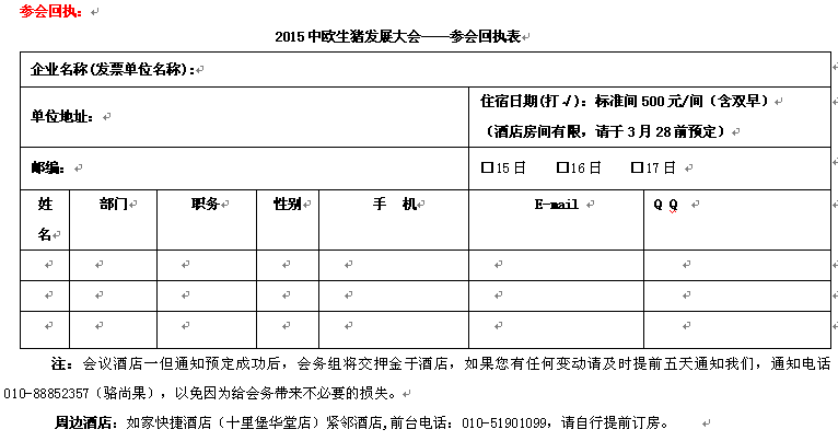2015年3月20日前報名會務(wù)費為1000元/人,2015年3月20日后及現(xiàn)場報名會務(wù)費為1500元/人。 會務(wù)費含:會議費、資料費用、餐費、紀(jì)念品、《2015中國養(yǎng)豬行業(yè)年鑒》1本;《動物福利在中國》1本;《賽爾養(yǎng)豬市場》1本。食宿統(tǒng)一安排,住宿及交通自理。席位有限,從速報名!