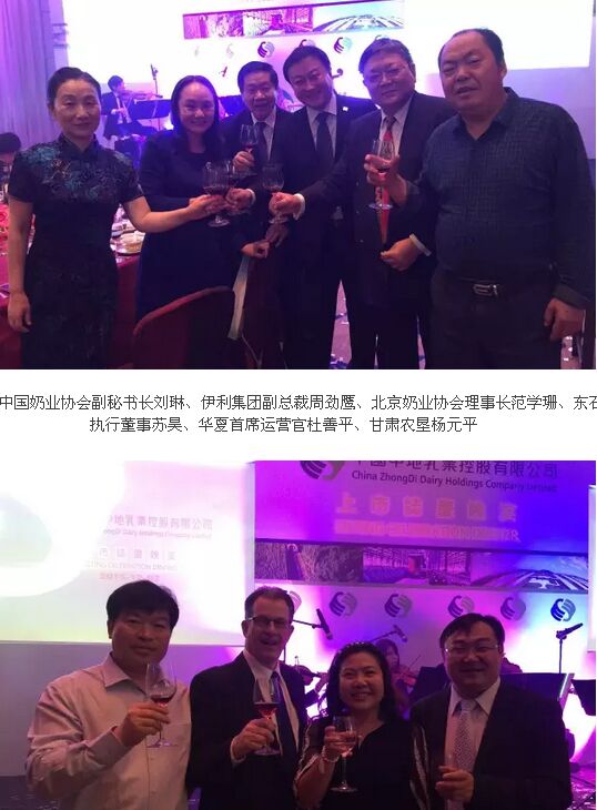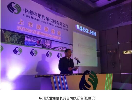 晚宴現(xiàn)場,中地乳業(yè)(01492.hk)董事長張建設先生,發(fā)表了熱情洋溢的致辭。表達了對于社會各界關(guān)注中地乳業(yè)朋友的感謝之情。張總不無感慨的說,中地乳業(yè)正式登陸香港、立足國際資本市場,這是公司發(fā)展歷程中又一個重要里程碑,也是公司推進國際化戰(zhàn)略取得的重要成果。中地乳業(yè)作為中國奶牛牧場經(jīng)營公司,一直從事優(yōu)質(zhì)原料奶的生產(chǎn)。未來,將會繼續(xù)擴大營運規(guī)模,生產(chǎn)更多優(yōu)質(zhì)及安全的原料奶,致力成為中國最大的奶牛牧場經(jīng)營公司之一。同時,也會放眼世界,妥善利用募得資金,為投資人創(chuàng)造更大價值。并在最后表示,中地乳業(yè)將嚴格遵守上市規(guī)則,履行上市承諾,以更加優(yōu)良的經(jīng)營業(yè)績回報社會。將繼續(xù)秉承穩(wěn)扎穩(wěn)打、艱苦創(chuàng)業(yè)的企業(yè)精神,再接再厲,百尺竿頭更進一步。