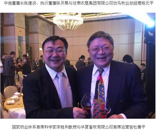 中地乳業(yè)(01492.hk)董事長兼首席執(zhí)行官張建設攜執(zhí)行董事張開展、非執(zhí)行董事劉岱、副總經(jīng)理宋乃社、副總經(jīng)理/聯(lián)席公司秘書廉恩臣、首席財務官何珊等一行熱情招待來自國內(nèi)外的上百位嘉賓。中地乳業(yè)上市中介機構(gòu)的代表,中國奶業(yè)協(xié)會副秘書長劉琳、北京奶業(yè)協(xié)會理事長范學珊等行業(yè)協(xié)會代表,國家奶業(yè)體系首席科學家李勝利教授、西北農(nóng)林科技大學昝林森教授等行業(yè)專家,內(nèi)蒙古伊利實業(yè)集團股份有限公司副總裁周勁鷹、內(nèi)蒙古蒙牛乳業(yè)(集團)股份有限公司奶源總經(jīng)理郭小岑等戰(zhàn)略伙伴悉數(shù)出席宴會。另外,北京銀行、農(nóng)業(yè)銀行、招商銀行、交通銀行、民生銀行等金融機構(gòu)代表以及河南佳田企業(yè)集團公司董事長關(guān)曉彥、華夏畜牧有限公司首席運營官杜善平、甘肅農(nóng)墾集團有限公司飲馬牧業(yè)總經(jīng)理楊元平、東營澳亞現(xiàn)代牧場有限公司總裁楊庫、澳大利亞農(nóng)牧業(yè)出口有限公司董事長Justin、澳大利亞環(huán)球畜牧出口有限公司董事長Mark He、德國諾丁林種畜基因產(chǎn)品公司中國總經(jīng)理劉彥敏、北京環(huán)球種畜有限責任公司董事長阿里斯迪爾?皮爾森、上海伐利牧業(yè)技術(shù)設備有限公司董事長須明華、北京東石北美牧場科技有限公司執(zhí)行董事蘇昊等行業(yè)代表也共同出席晚宴,活動現(xiàn)場氣氛熱烈。