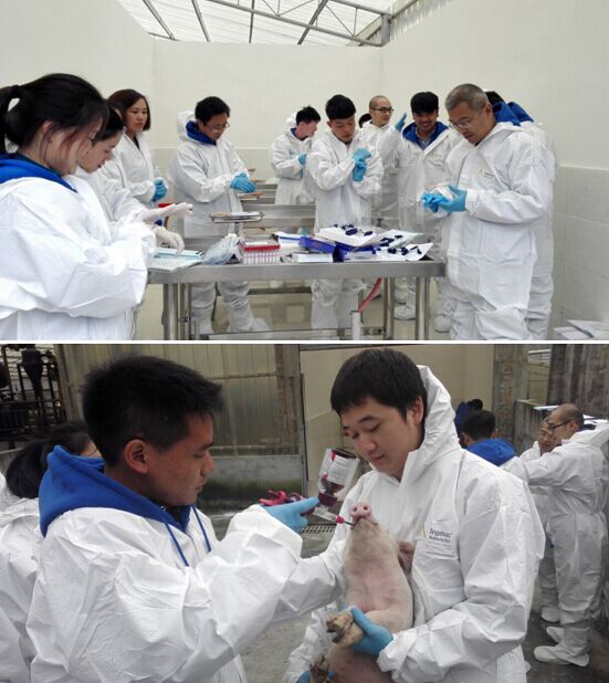 培訓內(nèi)容主要分為天兆生產(chǎn)管理和獸醫(yī)技術兩個板塊。在天兆生產(chǎn)管理課程講解中,天兆豬業(yè)各個板塊相關負責人對企業(yè)文化建設、人力資源管理及自我的管理、豬場的六度管理、飼料的接收與檢查、種豬的查情與配種及產(chǎn)房的管理技術、云智能和Onefarm軟件的輸入與應用、成本與績效核算及財務信息的運用等內(nèi)容向?qū)W員進行了詳細的講解。隨后,在獸醫(yī)技術課程講解中,勃林格中國區(qū)培訓中心經(jīng)理譚濤、勃林格全國大客戶技術服務經(jīng)理唐閆利、勃林格KA大北京區(qū)經(jīng)理吳梁波等幾位講師不僅對免疫學、生物安全、注射與疫苗處理及剖檢操作與記錄等理論知識進行了介紹,還帶領學員們進行了一場注射與疫苗處理及剖檢操作與記錄等的實操訓練。