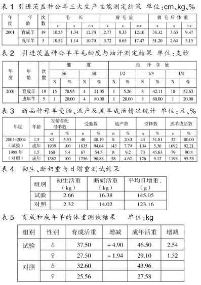 2 引進茨蓋羊的生產(chǎn)性能和羊毛品質(zhì)(見表1,表2)