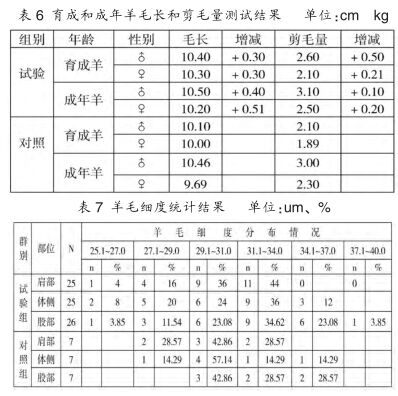 (3)育成和成年羊毛長和剪毛量測試結(jié)果見表6。