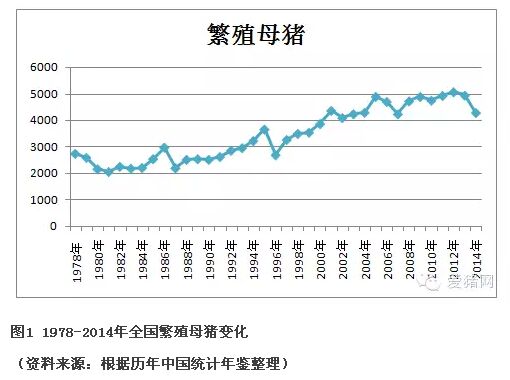 從上我們發(fā)現(xiàn),1994年進(jìn)入3000萬頭,2001年進(jìn)入4000萬頭,2005年到了4980萬頭,以后這10年就沒有降到4500萬頭。1994-2001年間16年增長了1000萬頭,2001-2005年間,這5年增長了1000萬頭。我們仔細(xì)回憶2001-2005年間整個(gè)中國經(jīng)濟(jì)處于高速發(fā)展時(shí)期。2001年GDP突破10萬元大關(guān),到2005年接近20萬億元,中國養(yǎng)豬業(yè)搭上這是經(jīng)濟(jì)發(fā)展的“高鐵”列車。2006-2014年又是10年,繁殖母豬數(shù)量一直在4500-5000萬頭跳躍發(fā)展。GDP從20萬億元到60萬億元快速發(fā)展。