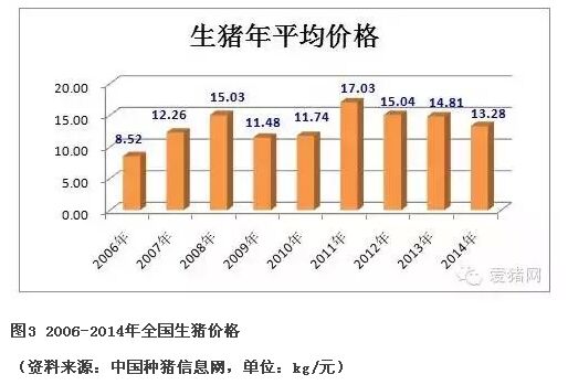 這9年生豬價(jià)格時(shí)起彼伏,2006年以來,全國生豬平均價(jià)格總體上呈現(xiàn)上揚(yáng)的態(tài)勢,2008、2011年價(jià)格比較高,最高點(diǎn)出現(xiàn)在2011年9月(19.59元/kg),最低點(diǎn)出現(xiàn)在2006年7月(6.91元/kg)。