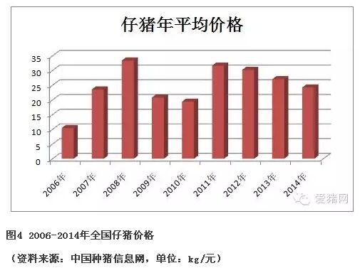 自2006年以來,全國仔豬平均價(jià)格總體上呈現(xiàn)上揚(yáng),整體走勢和生豬價(jià)格走勢相吻合。在2008年4月出現(xiàn)有史以來的最高點(diǎn),達(dá)到46.88元/kg;在2006年5月達(dá)最低點(diǎn),為6.15元/kg。