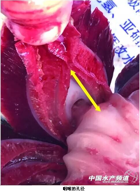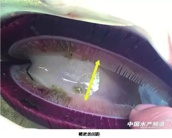 鳙魚為濾食性魚類,其主要進食微小的浮游動物和浮游植物,所以我們?nèi)粘J褂玫?.0mm、3.0mm顆粒的飼料粒徑不適用于鳙魚,鳙魚進食顆粒的大小主要取決于鰓耙間隙和咽喉的孔徑(見圖)。目前通威股份在華南地區(qū)推廣的飼料投喂模式為“133粉料+151膨化料”模式,飼料使用過程中要針對不同規(guī)格的鳙魚使用不同粒徑的飼料,若前期使用大粒徑的膨化料,則會因為難以通過其咽喉被吐出,所以在此階段最好使用粉料投喂。而到了后期,鳙魚到了半斤以上,隨著鳙魚的生長,鰓耙的間距也較前期加大,粉料會隨著水流從加大的鰓耙間距排出,使鳙魚從外界攝取的餌料減少,從而影響鳙魚的生長,很多精養(yǎng)鳙魚的客戶反應(yīng)使用粉料在1斤半后生長速度減緩則多由此引起,所以養(yǎng)殖過程中選擇鳙魚飼料時一定要考慮存塘鳙魚的規(guī)格來定,而通威“133粉料+151膨化料”模式則很好的解決了這一問題。