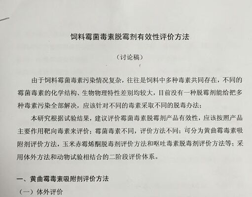 該討論稿的提出標(biāo)志著脫霉劑有效性評價規(guī)程建立工作取得了階段性的重大突破,對保障我國畜禽養(yǎng)殖業(yè)的健康發(fā)展、規(guī)范脫霉劑市場有著重要意義。