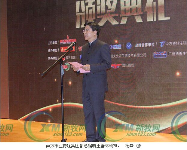 南方報業(yè)傳媒集團(tuán)副總編輯王垂林先生為頒獎典禮致辭。王垂林介紹,作為《農(nóng)財寶典》系列品牌活動之一的風(fēng)云榜評選活動,是一個由思想和專業(yè)主義主導(dǎo)的行業(yè)發(fā)現(xiàn),是全國養(yǎng)殖業(yè)界得以反躬自省、總結(jié)促進(jìn)的契機,亦是倡導(dǎo)公共價值、振興養(yǎng)殖行業(yè)的公益平臺。本次盛典云集了養(yǎng)殖產(chǎn)業(yè)的各路英雄,立足中國養(yǎng)殖現(xiàn)狀,探討行業(yè)前景,旨在為奮斗者加油,為成功者加冕。