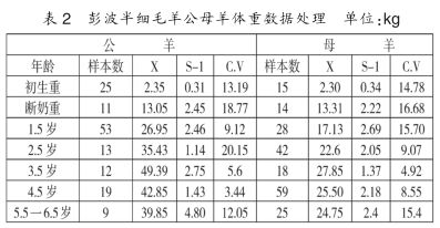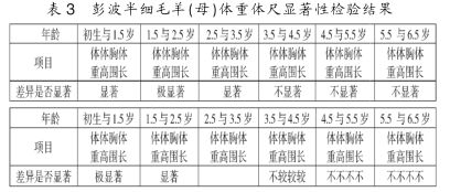 從表1可以看出,彭波半細毛羊公母羊從斷奶到3.5歲齡有規(guī)律地增長,4.5歲以后有下降趨勢。