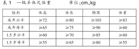注:一級羊中的優(yōu)秀個體,成年公羊體重90kg以上、成年母羊體重68kg以上的,或者有特殊種用價值的可列為特級羊。選留后備種用公羔、母羔必須是初生重大、發(fā)育良好且體型、外貌符合品種標準羔羊。選留的公羔、母羔秋季體重必須分別達到40kg和35kg以上。