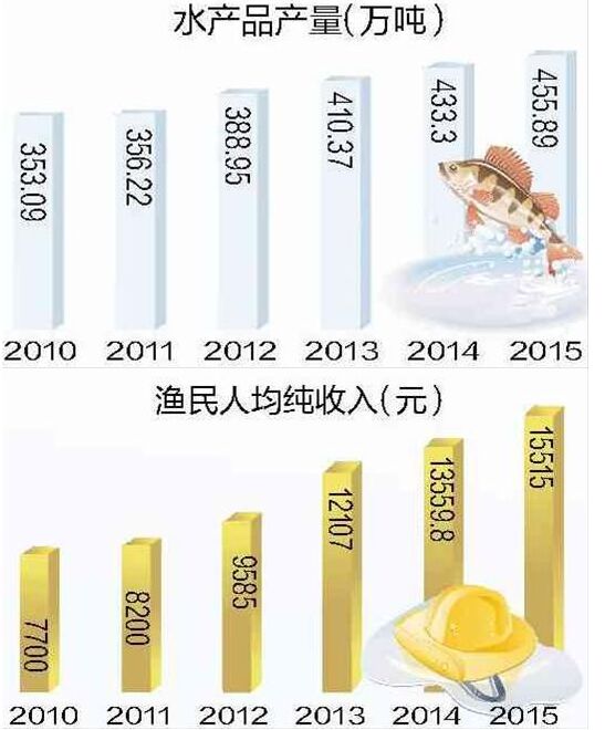 多項“全國第一”,筑牢湖北水產(chǎn)地位:2015年淡水產(chǎn)品總量455.89萬噸,連續(xù)20年雄居全國榜首,養(yǎng)殖面積、人均占有量、淡水漁業(yè)科技實力等多項綜合性指標(biāo)均居全國第一。全省漁業(yè)總產(chǎn)值達到2179.5億元,比2010年增長134%,實現(xiàn)翻番。全省漁民人均純收入15515元。漁業(yè)一產(chǎn)業(yè)產(chǎn)值1032億元,比2010年增長103%,二三產(chǎn)業(yè)產(chǎn)值1147億元,比2010年增長171%,提前兩年實現(xiàn)“雙千億生態(tài)產(chǎn)業(yè)”目標(biāo)。水產(chǎn)業(yè)已經(jīng)成為全省農(nóng)業(yè)農(nóng)村經(jīng)濟中最具活力的特色優(yōu)勢產(chǎn)業(yè)和支柱產(chǎn)業(yè),成為促進農(nóng)業(yè)穩(wěn)定發(fā)展、農(nóng)民持續(xù)增收的亮點產(chǎn)業(yè)。