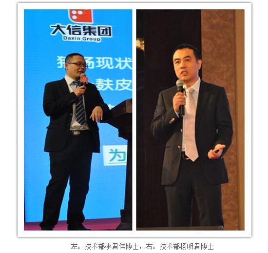 大信十年,一直專注于做好豬料產(chǎn)品,而創(chuàng)新則是一個企業(yè)賴以生存和發(fā)展的源動力,技術部的李君偉博士介紹了大信的兩款功能性產(chǎn)品,一是脫僵寶,養(yǎng)殖過程中產(chǎn)生僵豬的原因大概有四種,食僵,病僵,蟲僵和奶僵,脫僵寶針對僵豬消化和吸收差,腸道菌群紊亂、免疫力低以及器質(zhì)性損失等生理特點,使內(nèi)臟器官得到二次發(fā)育,對每頭僵豬投入20元,即可減少260元的隱性經(jīng)濟損失;產(chǎn)品二是貝貝爽,針對現(xiàn)在豬場大多存在的用麩皮接生的缺點,即吸水力差、含有霉菌毒素,降低仔豬免疫力的特點,貝貝爽可以使剛出生的小豬保持皮膚干爽,加快臍帶脫落,改善保溫箱的環(huán)境,使小豬盡快吃到初乳。