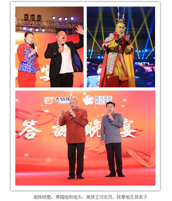 2016大信經(jīng)銷商年會,精彩紛呈,晚宴還邀請到星光大道的眾多明星前來助陣表演,大信飼料代言人陳寒柏更是攜弟子親臨晚會現(xiàn)場,本次年會在豐盛的晚宴和精彩的演出中落下帷幕,我們預祝大信的未來走的更堅定,明天更美好!