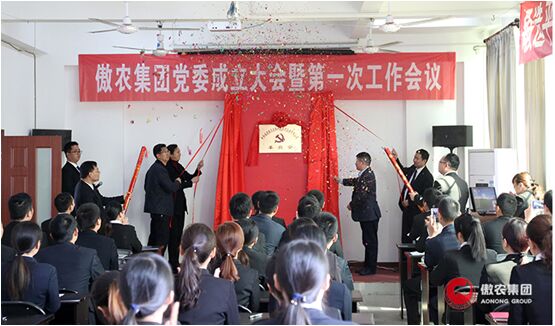 3月1日,在薌城區(qū)委組織部、芝山鎮(zhèn)黨委的共同見證下,中共福建傲農生物科技集團股份有限公司黨委正式揭牌成立。薌城區(qū)委組織部和金峰開發(fā)區(qū)、芝山鎮(zhèn)領導,傲農集團董事長吳有林,副總裁黃華棟、葉俊標及福建區(qū)全體黨員出席了本次成立揭牌大會。