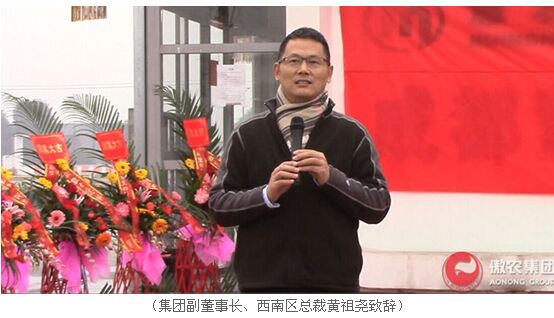 傲農(nóng)集團(tuán)副董事長(zhǎng)、西南區(qū)總裁黃祖堯在成都慧農(nóng)開業(yè)典禮上致辭。他對(duì)成都慧農(nóng)的成立表示祝賀,希望成都慧農(nóng)能夠秉承傲農(nóng)文化,志存高遠(yuǎn),有效整合內(nèi)外資源,成功創(chuàng)業(yè)。同時(shí),他要求西南區(qū)、四川事業(yè)部、四川傲農(nóng)羊安基地為成都慧農(nóng)發(fā)展提供幫助,助力成都慧農(nóng)各項(xiàng)事業(yè)取得快速突破。