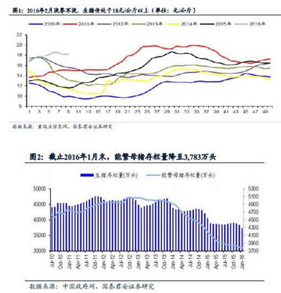 國泰君安稱,受“寒潮”沖擊影響,2016 年1、2月份仔豬腹瀉等疫情較為嚴(yán)重,加劇生豬供給的短缺,從而導(dǎo)致近期仔豬價格大幅上漲。