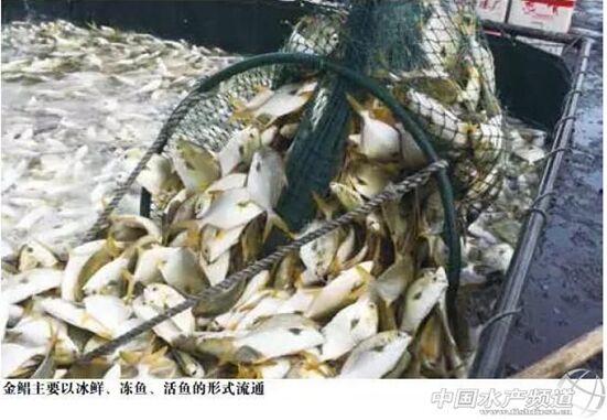 金鯧主要以冰鮮、凍魚(yú)、活魚(yú)的形式流通。其中,凍魚(yú)流通量最大占近7成,冰鮮的占近3成,活魚(yú)主要是供港澳占比較小。冰鮮形式的金鯧主要流向沿海等地,如珠三角、長(zhǎng)三角,并輻射東北等地。凍品則流向全國(guó)各地,并出口以美國(guó)為主的其他國(guó)家,如美國(guó)主要集中東部和西部華人區(qū)等地。凍魚(yú)這塊則受到其他水產(chǎn)品種的影響的因素較多,易替代,且其出口受貿(mào)易和外圍因素影響較大。