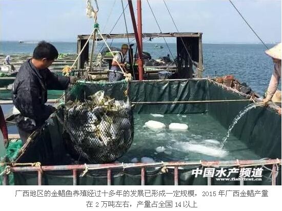 廣西地區(qū)的金鯧魚(yú)養(yǎng)殖經(jīng)過(guò)十多年的發(fā)展已形成一定規(guī)模,2015年廣西金鯧產(chǎn)量在2萬(wàn)噸左右,產(chǎn)量占全國(guó)1/4以上。除缺少金鯧魚(yú)種苗基地外,廣西地區(qū)已形成由養(yǎng)殖端到加工端的配套設(shè)施和服務(wù)。
