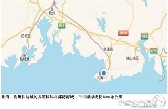 廣西地區(qū)的金鯧魚(yú)養(yǎng)殖主要分布在北海、欽州和防城港三個(gè)區(qū)域,其中北海鐵山港和欽州灣為主要養(yǎng)殖區(qū)。北海、欽州和防城的養(yǎng)殖區(qū)屬北部灣海域,三市海岸線(xiàn)長(zhǎng)1600 余公里。廣西東南方為雷州半島和海南島,受雷州半島和海南島的屏障作用,一般來(lái)說(shuō),臺(tái)風(fēng)對(duì)廣西沿海一帶養(yǎng)殖的破壞性相對(duì)較小。