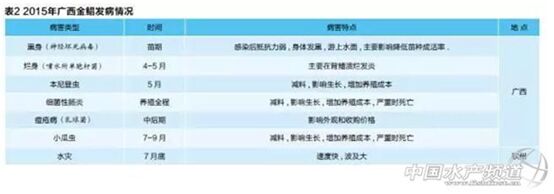2015年金鯧魚(yú)排投苗成活率為85%,比往年高15%以上,這與養(yǎng)戶(hù)在苗期注重營(yíng)養(yǎng)搭配、病害防治和加強(qiáng)管理密不可分。