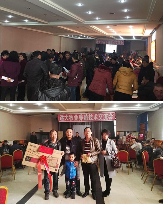 條幅、彩帶、刀旗、各種獎(jiǎng)品擺滿了200多平米的會(huì)場,儼然像是一場典禮的前奏。前來參加會(huì)議的養(yǎng)殖伙伴共170余人,既有受益多年的老客戶;還有慕名而來、準(zhǔn)備合作的新伙伴……,會(huì)場座無虛席。遠(yuǎn)大講師們作企業(yè)簡介、遠(yuǎn)大生豬飼喂模式講解,現(xiàn)場伙伴認(rèn)真的聽著、記著、思考著……有時(shí)還不由自主的點(diǎn)點(diǎn)頭,表示贊同。