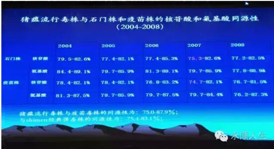 論壇后大家對廣東永順的高致病性豬繁殖與呼吸障礙綜合征活疫苗(GDr180株)興趣極大,相信廣東永順和中國獸醫(yī)藥品監(jiān)察所合作經(jīng)過9年時間研究成功的GDr180株藍耳苗同ST豬瘟苗一樣完美,將為控制藍耳病做出巨大貢獻!