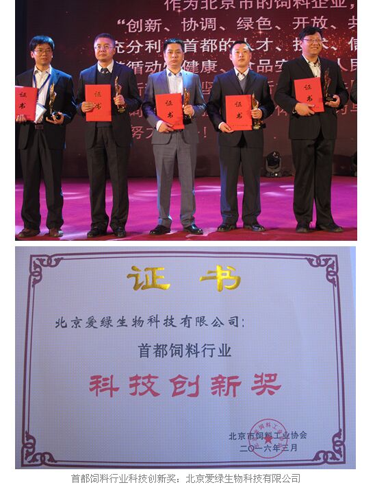 在北京市飼料工業(yè)協(xié)會(huì)30周年頒獎(jiǎng)盛典上,北京愛(ài)綠獲得了行業(yè)專家和領(lǐng)導(dǎo)的肯定,同時(shí)在同時(shí)在廣大業(yè)內(nèi)同仁的網(wǎng)絡(luò)投票支持下,獲得了四項(xiàng)嘉獎(jiǎng):