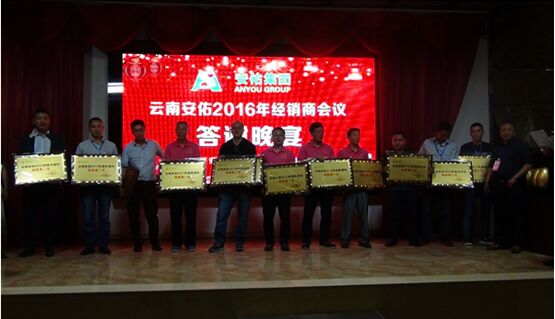會(huì)后,云南安佑在四??绝喢朗吵窃O(shè)答謝晚宴接待參加會(huì)議的經(jīng)銷(xiāo)商伙伴,在品嘗宜良特色美食的同時(shí),為2015年度的優(yōu)秀經(jīng)銷(xiāo)商合作伙伴頒發(fā)了榮譽(yù)證書(shū)和獎(jiǎng)勵(lì)。在祥和的氛圍中,本次經(jīng)銷(xiāo)商升級(jí)轉(zhuǎn)型培訓(xùn)會(huì)議圓滿(mǎn)落幕。