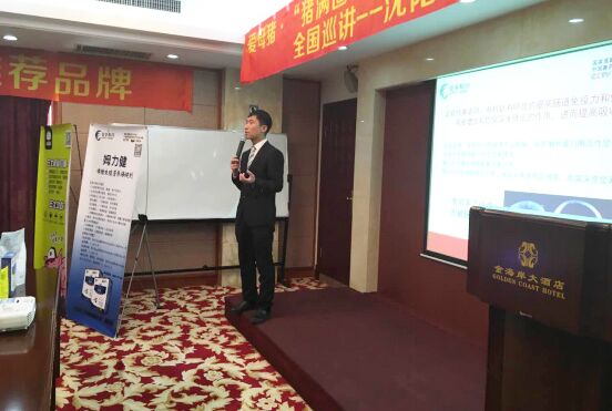 最后,技術(shù)部張巖老師進(jìn)行了《有效提高“三率” 助力豬場(chǎng)利潤(rùn)倍增》的講解?!胺屏衙馈笔菄?guó)內(nèi)首款含“有機(jī)鈦”的豬專用有機(jī)促長(zhǎng)劑,使用3天皮紅毛亮,5天過(guò)料現(xiàn)象消失,15天明顯見長(zhǎng),全程使用增重30斤,提前15天出欄。