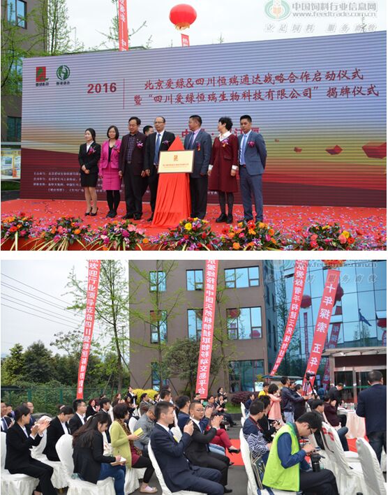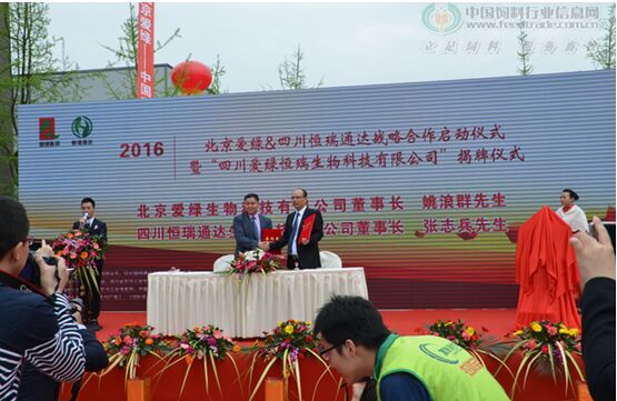 2016年4月8日,在四川省都江堰市四川恒瑞通達(dá)生物科技有限公司基地,舉行了“北京愛綠﹠四川恒瑞通達(dá)戰(zhàn)略合作啟動(dòng)儀式暨四川愛綠恒瑞生物科技有限公司揭牌儀式”,北京愛綠生物科技有限公司董事長(zhǎng)姚浪群博士與四川恒瑞通達(dá)生物科技有限公司董事長(zhǎng)張志兵先生現(xiàn)場(chǎng)簽約,合資成立四川愛綠恒瑞生物科技有限公司,致力應(yīng)用于畜牧生產(chǎn)的植物提取物生產(chǎn)銷售、植物提取物復(fù)方配制服務(wù),并向市場(chǎng)提供植物提取物單品。