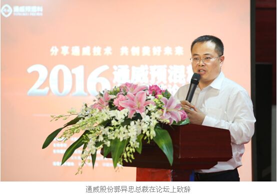 通威股份郭異忠總裁上臺致辭,對各位專家學(xué)者,企業(yè)家長期以來對通威的支持與幫助表示感謝。郭總指出,此次論壇匯聚了大量行業(yè)精英,深入探討研究最前沿、最先進的水產(chǎn)營養(yǎng)技術(shù),對于水產(chǎn)行業(yè)發(fā)展意義重大。郭總表示:通威在水產(chǎn)飼料行業(yè)的龍頭地位,離不開對科技的重視與投入,通威也希望與各位合作伙伴加強交流與合作,分享先進技術(shù),共創(chuàng)美好未來?!?