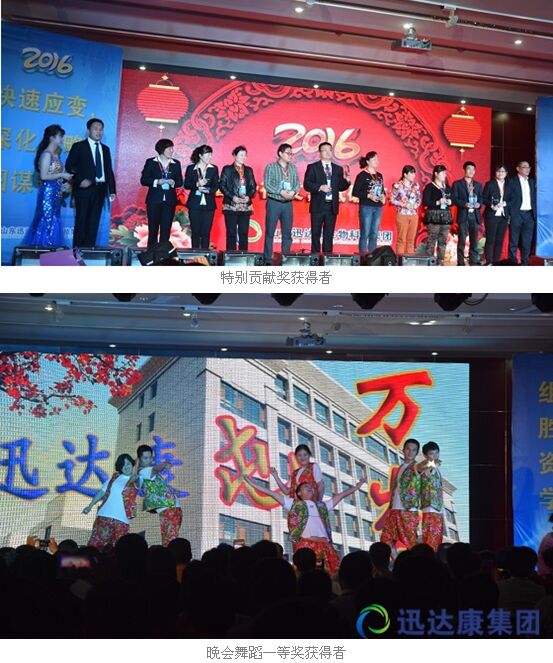 年會(huì)結(jié)束后集團(tuán)家人欣賞財(cái)年晚會(huì),本次活動(dòng)的文藝演出與幸運(yùn)抽獎(jiǎng)交叉進(jìn)行,現(xiàn)場(chǎng)氣氛熱烈,一片歡聲笑語(yǔ)。公司制作的視頻回顧了迅達(dá)康集團(tuán)15財(cái)年發(fā)生的十件大事;“最美迅達(dá)康”視頻將整場(chǎng)活動(dòng)推向高潮,全場(chǎng)倍受鼓舞,節(jié)目精彩絕倫。在活動(dòng)現(xiàn)場(chǎng)安排了頒獎(jiǎng)環(huán)節(jié),集團(tuán)領(lǐng)導(dǎo)分別抽出猴賽雷獎(jiǎng)、貢獻(xiàn)獎(jiǎng)(三年以下工齡)、突出貢獻(xiàn)獎(jiǎng)(五年工齡)和特別貢獻(xiàn)獎(jiǎng)(十年以上工齡)等獎(jiǎng)項(xiàng),并分別為優(yōu)秀員工和其他獲獎(jiǎng)員工頒發(fā)了獎(jiǎng)金和證書(shū)。整場(chǎng)晚會(huì)高潮迭起,笑聲掌聲不斷。
