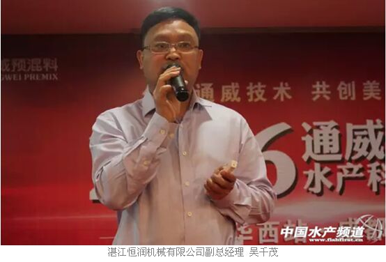 “在未來3年,扶持12個3萬噸(是比較安全的噸位)級飼料企業(yè)成長起來,共同實(shí)現(xiàn)未來的雙贏和共贏;未來5年,扶持10個5萬噸級水產(chǎn)飼料企業(yè)成長起來?!蓖ㄍA(yù)混料總經(jīng)理陳波向大家介紹了未來幾年的規(guī)劃。陳波更表示:公司作為連接行業(yè)和中小型企業(yè)的橋梁,會一直與客戶進(jìn)行資源共享和互補(bǔ)。今后主要定位在兩個方面:整合資源,搭建內(nèi)、外部平臺。通過通威預(yù)混料公司銜接行業(yè)的原料、機(jī)械設(shè)備、水產(chǎn)技術(shù)等,銜接好資源與客戶分享。通威預(yù)混料會努力做好服務(wù)工作,幫助客戶在整合的過程中更好地發(fā)展。