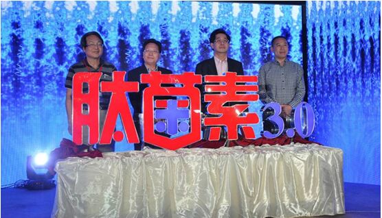 中國農(nóng)牧CTO俱樂部理事長、安佑集團董事長洪平先生,中國農(nóng)科院飼料研究所研究員、生物飼料開發(fā)國家工程研究中心主任蔡輝益博士,中國農(nóng)業(yè)大學張日俊博士和中國飼用抗生素替代品產(chǎn)業(yè)創(chuàng)新戰(zhàn)略聯(lián)盟理事長、山東寶來利來生物產(chǎn)業(yè)集團董事長單寶龍先生一起在晚宴上,為肽菌素3.0 揭幕站臺助勢。