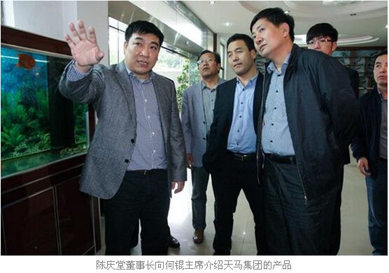 何錕主席深入考察了天馬集團(tuán)二期工程現(xiàn)場(chǎng),興致勃勃地觀看了天馬集團(tuán)產(chǎn)品樣品,詳細(xì)了解相關(guān)特種水產(chǎn)養(yǎng)殖動(dòng)物。在聽取了陳慶堂董事長(zhǎng)對(duì)天馬集團(tuán)十多年來興企、治企、強(qiáng)企的發(fā)展歷程和未來的中長(zhǎng)期戰(zhàn)略發(fā)展規(guī)劃的詳細(xì)介紹后,他對(duì)陳慶堂董事長(zhǎng)的治企理念表示由衷地欽佩并高度贊賞天馬集團(tuán)跨越發(fā)展取得的成就。他表示,天馬集團(tuán)強(qiáng)大的研發(fā)實(shí)力、生產(chǎn)實(shí)力,先進(jìn)的管理模式,優(yōu)秀的企業(yè)文化和強(qiáng)勁的發(fā)展態(tài)勢(shì)讓他深感震撼。