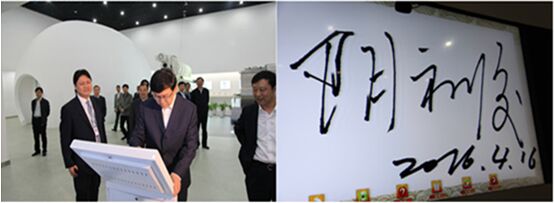 參觀結(jié)束后,陰和俊還在牧羊留言屏上簽名留念。