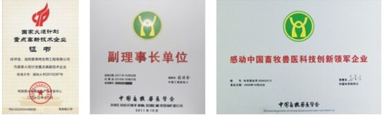 2006年公司榮獲“感動(dòng)中國畜牧獸醫(yī)科技創(chuàng)新領(lǐng)軍企業(yè)”稱號(hào);2008、2011、2014年公司連續(xù)被認(rèn)定為“新標(biāo)準(zhǔn)高新技術(shù)企業(yè)”,2010年公司被國家科技部認(rèn)定為“國家火炬計(jì)劃重點(diǎn)高新技術(shù)企業(yè)”,2015年公司獲認(rèn)定“國家技術(shù)創(chuàng)新示范企業(yè)”。