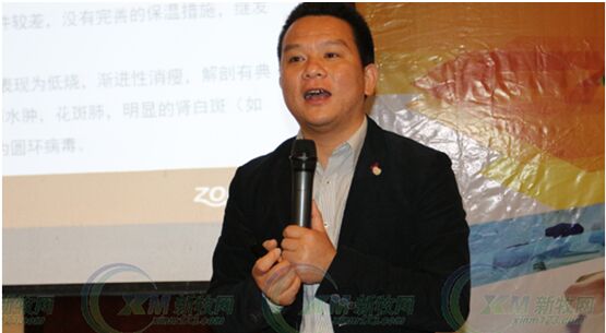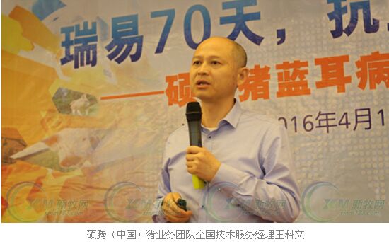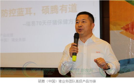 論壇上,碩騰(中國(guó))豬業(yè)務(wù)團(tuán)隊(duì)高級(jí)產(chǎn)品經(jīng)理劉鋒簡(jiǎn)述了高致病性藍(lán)耳病的流行概況和危害,分析了瑞易70天保健方案在豬場(chǎng)應(yīng)運(yùn)情況。