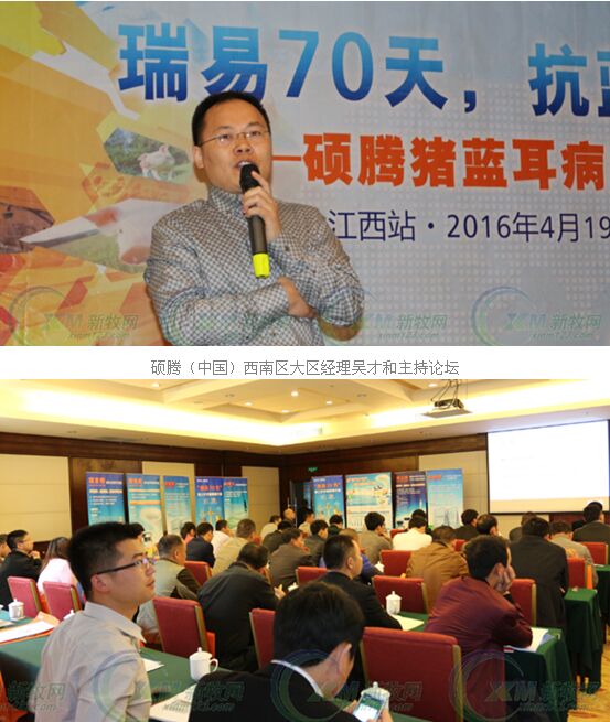 4月19日,“瑞易70天,抗藍(lán)中國(guó)行”——碩騰藍(lán)耳病防控論壇江西站在井岡山市舉辦。碩騰(中國(guó))的王科文博士、劉鋒、彭建平經(jīng)理等分享了主題報(bào)告,來自江西省各地的100多養(yǎng)豬人參會(huì)交流。