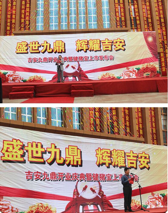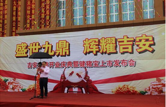 借著開業(yè)慶典的東風(fēng),吉安九鼎農(nóng)牧有限公司總經(jīng)理宣布了九鼎集團(tuán)無抗飼料健豬寶在吉安九鼎的上市,標(biāo)志著吉安九鼎無抗豬肉產(chǎn)業(yè)鏈正式啟動。