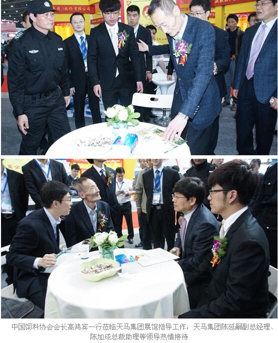 期間,農(nóng)業(yè)部原副部長、中國飼料協(xié)會會長高鴻賓,全國畜牧總站副站長、中國飼料工業(yè)協(xié)會副秘書長沙玉圣等領(lǐng)導(dǎo)同時親臨天馬集團(tuán)展館視察指導(dǎo)。這已是農(nóng)業(yè)部和中國飼料工業(yè)協(xié)會領(lǐng)導(dǎo)第五次集體蒞臨天馬集團(tuán)指導(dǎo)工作。天馬集團(tuán)陳延嗣副總經(jīng)理、陳加成總裁助理、研發(fā)中心張蕉南總監(jiān)、采購中心吳景紅總監(jiān)、生產(chǎn)管理中心陳金忠副總監(jiān)等領(lǐng)導(dǎo)熱情接待了高會長一行,并向他們簡要匯報了天馬集團(tuán)概況和中長期戰(zhàn)略發(fā)展規(guī)劃。