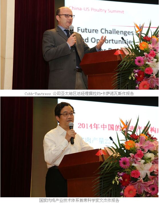 出席大會的領(lǐng)導(dǎo)及各界嘉賓有:全國畜牧總站站長、中國畜牧業(yè)協(xié)會常務(wù)副會長李希榮;遼寧省畜牧獸醫(yī)局黨組書記張喜凡;美國住沈陽領(lǐng)事館農(nóng)業(yè)貿(mào)易處主管領(lǐng)事Philip Jarrell(菲利普 賈雷爾);國家肉雞產(chǎn)業(yè)技術(shù)體系首席科學(xué)家、中國農(nóng)業(yè)科學(xué)院北京畜牧獸醫(yī)研究所副所長文杰;農(nóng)業(yè)部畜牧業(yè)司監(jiān)測分析處副處長張富;美國大豆協(xié)會董事Bill Wykes(比爾 威克斯);中國畜牧業(yè)協(xié)會禽業(yè)分會副會長,乾元浩生物股份有限公司總經(jīng)理丁向東;中國畜牧業(yè)協(xié)會禽業(yè)分會執(zhí)行會長單位,山東益生種畜禽股份有限公司總經(jīng)理遲漢東;美國谷物協(xié)會北京辦事處副主任姜軍陽;美國大豆出口協(xié)會首席代表張曉平;中國畜牧業(yè)協(xié)會禽業(yè)分會會長單位,福建圣農(nóng)發(fā)展股份有限公司常務(wù)副總裁傅細(xì)明;正大集團(tuán)農(nóng)牧食品企業(yè)中國區(qū)副董事長呂攀;中國畜牧業(yè)協(xié)會禽業(yè)分會會長,山東太合食品有限公司董事長張洪玉;中國畜牧業(yè)協(xié)會禽業(yè)分會副會長、山東春雪食品有限公司董事長鄭維新;中國畜牧業(yè)協(xié)會禽業(yè)分會副會長、山東和康源集團(tuán)有限公司董事長孟慶利;中國畜牧業(yè)協(xié)會禽業(yè)分會副會長、正欣源藥業(yè)集團(tuán)總經(jīng)理馬輝;中國畜牧業(yè)協(xié)會禽業(yè)分會副會長、燕北集團(tuán)-北京燕北華牧科技有限公司總經(jīng)理祁春清;中國畜牧業(yè)協(xié)會禽業(yè)分會副會長、江蘇省家禽科學(xué)研究所副所長戴有理;法國詩華動物保健公司技術(shù)與市場總監(jiān)陳猛。
